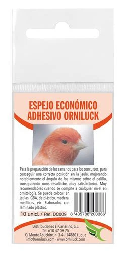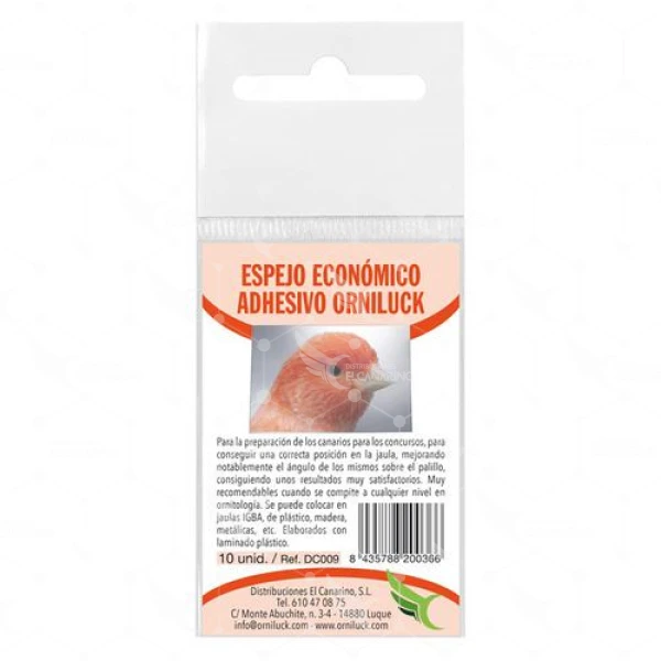 Espejo Económico Adhesivo Orniluck Para la preparación de nuestros Exóticos para los concursos, para conseguir una correcta posición en la jaula, mejorando notablemente el ángulo de los Exóticos sobre el palillo, con lo que se consiguen unos resultados muy satisfactorios.